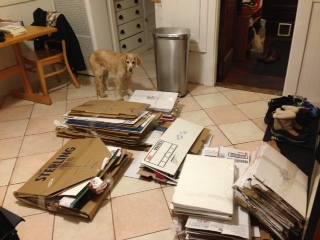 We are all moved in and (most) of the boxes are unpacked, ripped, flattened and subdued into orderly piles for the recycling truck that comes next week. Life is approximating some sort of order again, although I don’t yet have a routine for anything except hitting the toggle on the coffee maker before going out for THAT DOG’s morning walk. But it’s a start!
